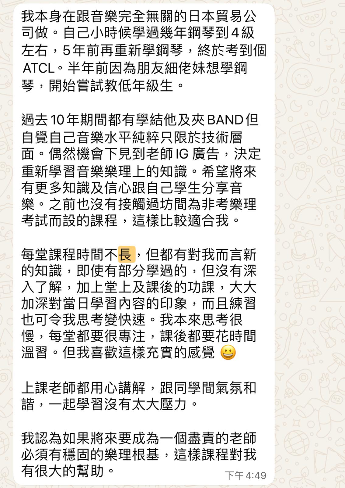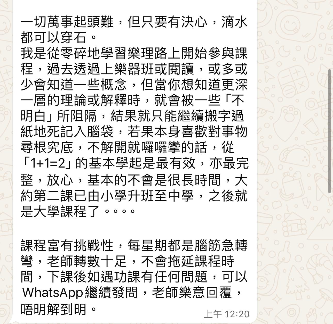 全港唯一教授大學音樂系程度樂理的課程